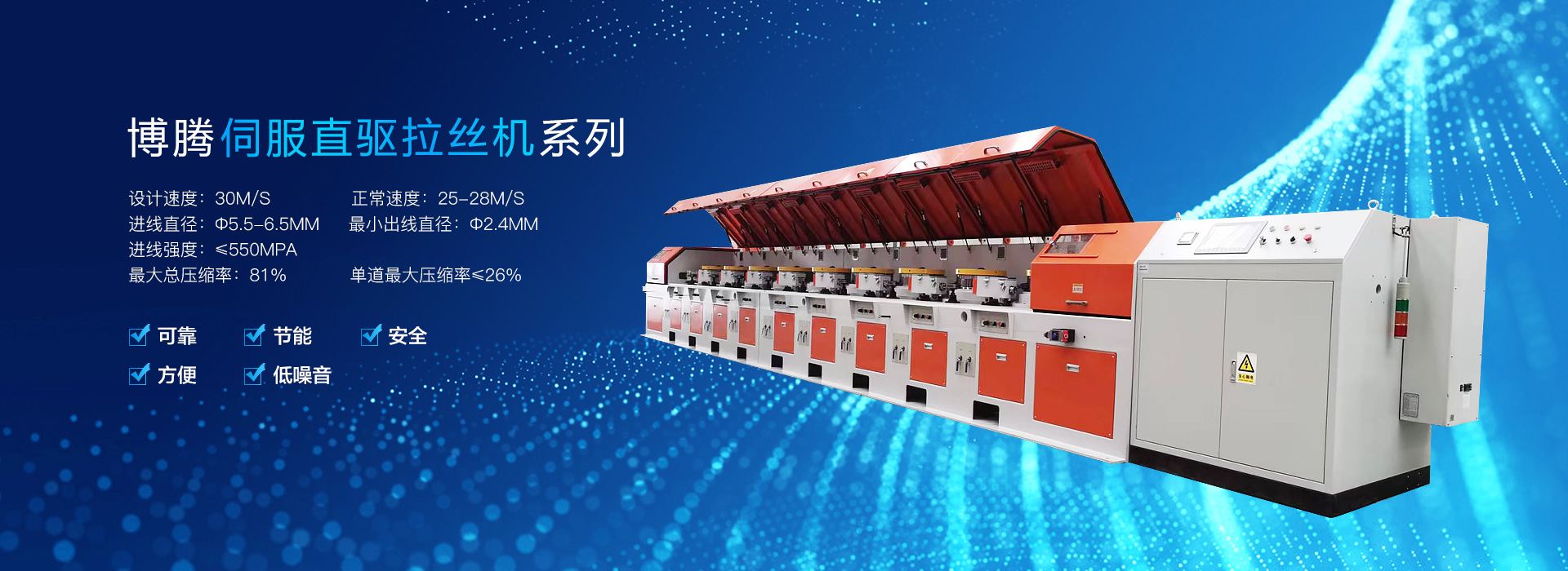 歡迎來到鄭州博騰機械設備有限公司網站!拉絲機行業,涉及的設備種類非常多,常見的拉絲機有水箱式拉絲機、直進式拉絲機、滑輪式拉絲機、倒立式拉絲機等,拉絲機主要應用在對銅絲、不銹鋼絲等金屬線纜材料的加工,屬線纜制造行業極為重要的加工設備。隨著變